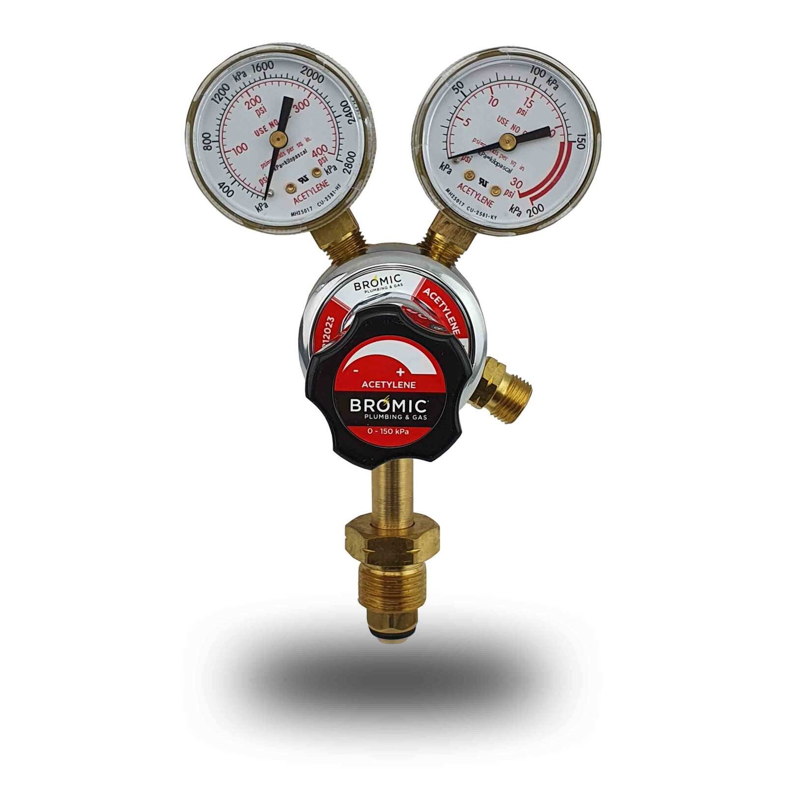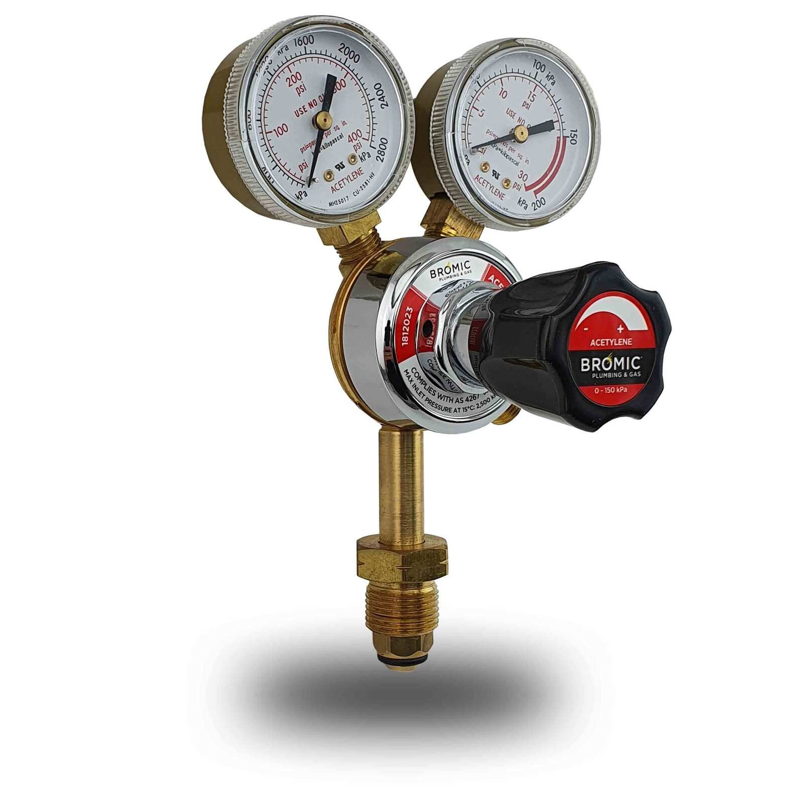 Bromic Acetylene Regulator. Brand new industrial quality Bromic acetylene regulator/flow meter that complies with Australian Standard AS4267. Compatible with all standard acetylene gas cylinders