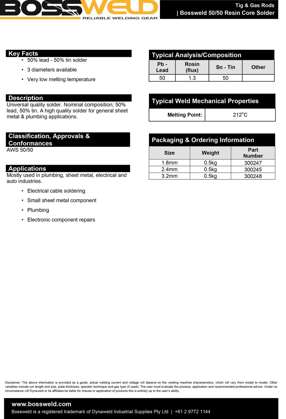 Categories: 2.3mm 50/50 Resin Core Solder - 500g, Brazing Rods / Silver Solder, Electrodes & Wires