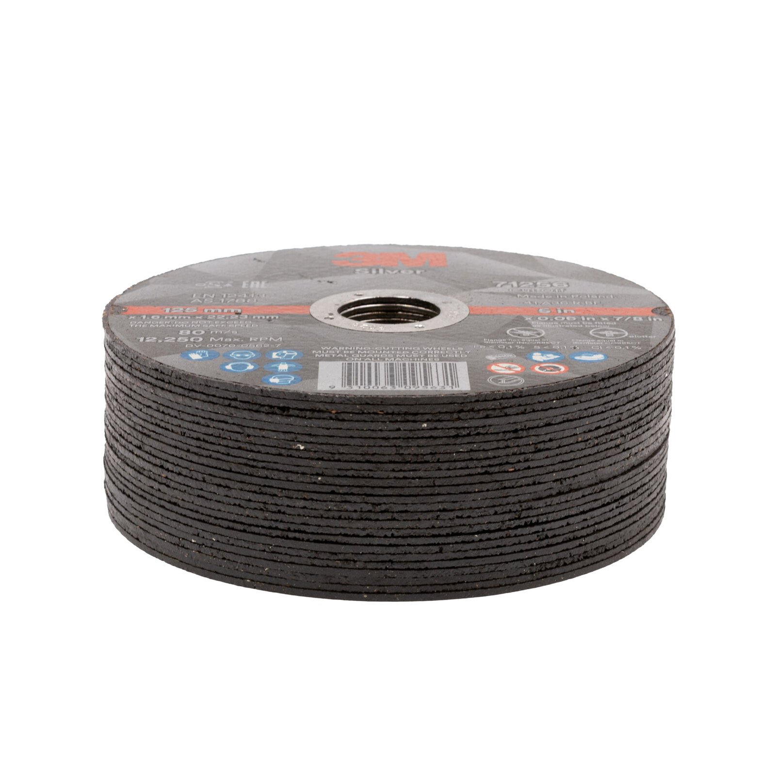3M Silver 5″ 125mm X 1.6mm 71256 Cutting Disc – Inox Steel Cut-Off Wheel – 25 Each