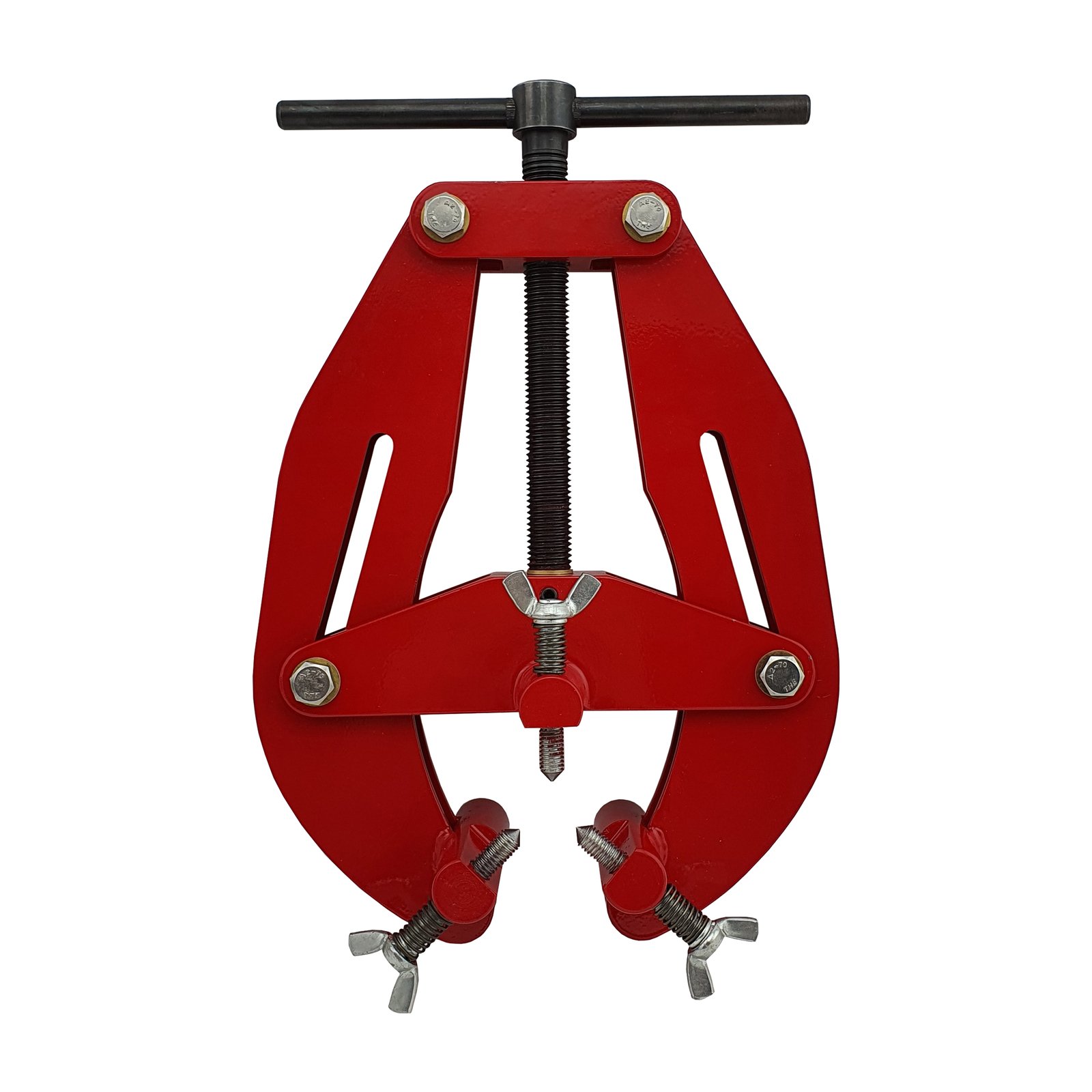 Features a singular locking T bar and three fine adjustment wing screws