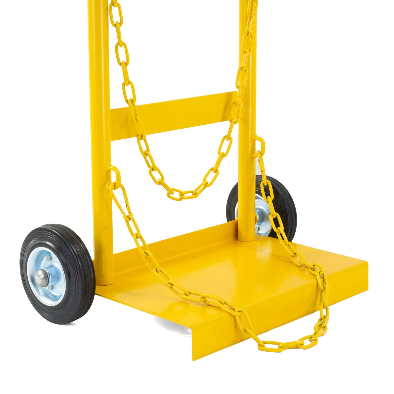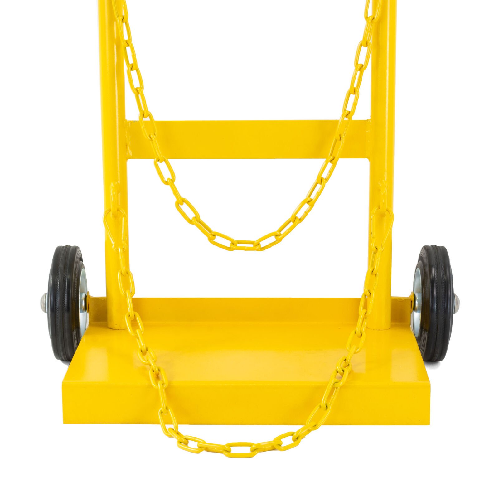 Securely holds a D size Oxygen and D size Acetylene cylinders with dual holding chains.