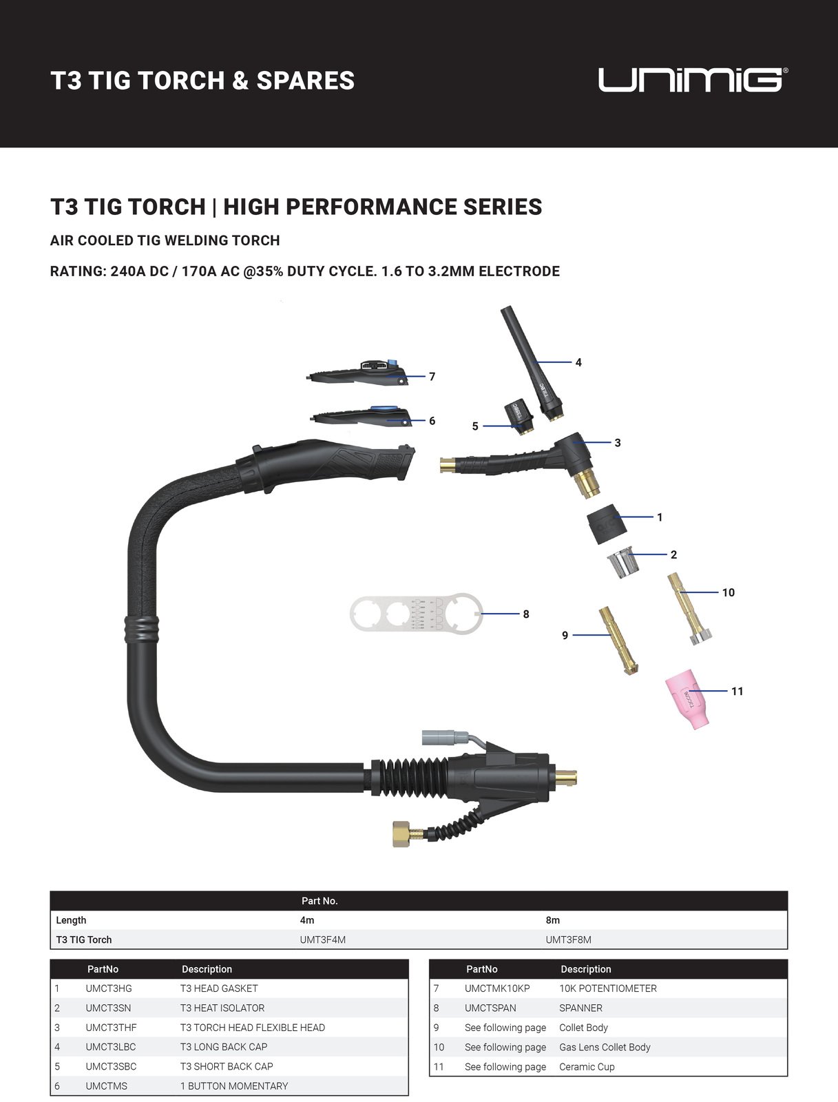 For UNIMIG T3 TIG Torch